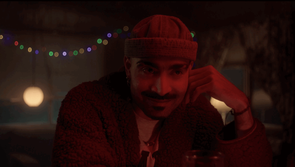 Jorgie Goico plays Josh, a shy but tenacious patron of the bar. Screenshot from “In The Valley: A Cosmic Queer Abduction Film.”