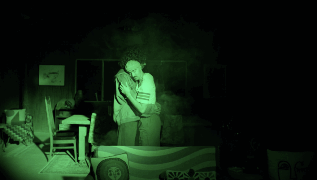 Goico’s intensity and vulnerability in the darker more intense scenes was impressive and impactful. Genuine final girl energy. Screenshot from “In The Valley: A Cosmic Queer Abduction Film.”